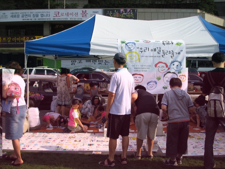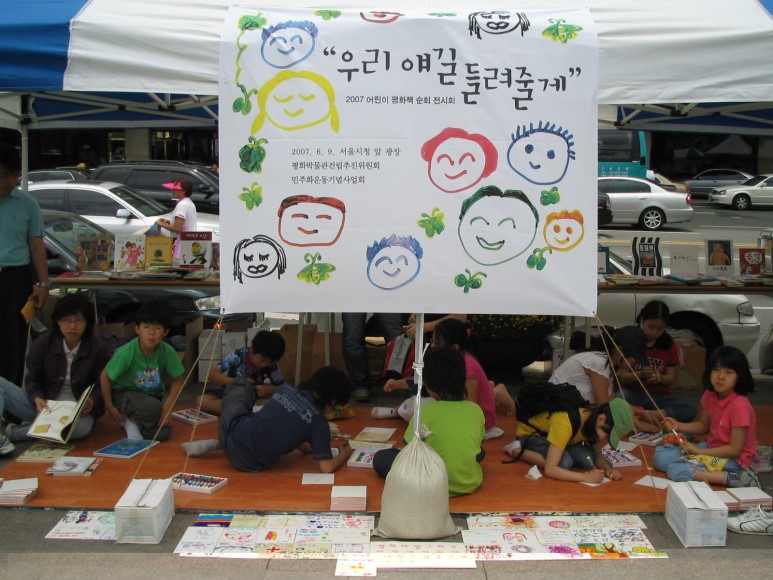 2007 ¾î¸°ÀÌ ÆòÈÃ¥ ¼øÈ¸ Àü½Ãȸ "¿ì¸® ¾ê±æ µé·ÁÁÙ°Ô"°¡ 6¿ù 6ÀÏ Á¦ÁÖ¿¡¼ ½ÃÀÛµÈ °¡¿îµ¥, 6¿ù 9ÀÏ 6¿ùÇ×Àï 20³â ±â³äÇà»çÀå¿¡¼µµ Àü½Ãȸ°¡ ¿·È´Ù. ¾î¸°ÀÌ ÆòÈÃ¥ Àü½Ãȸ¿Í Ã¥Àбâ, '³»°¡ »ý°¢ÇÏ´Â ÆòÈ' ´À³¦°ú »ý°¢ ŸÀÏ¿¡ ±×¸®±â µîÀ¸·Î ÁøÇàµÈ ½Ãû ¾Õ Àü½Ãȸ¿¡´Â 1õ¸í °¡±î¿î ¾ÆÀ̵é°ú ºÎ¸ð´ÔÀÌ Âü¿©ÇØ ¼ºÈ²À» ÀÌ·ð´Ù. ÆòÈȰµ¿°¡ ÀÓ¿µ½Å¾¾ µî°ú ÇÔ²²ÇÏ´Â ÆòÈÇåÃ¥¹æ, ÆòȳîÀÌÅ͵µ ÇÔ²² ¿·Á¼ ¾ÆÀ̵é°ú ÇÔ²² ¼ÒÁßÇϰí Àç¹ÌÀÖ´Â ½Ã°£À» ³ª´ ¼ö ÀÖ¾ú´Ù.