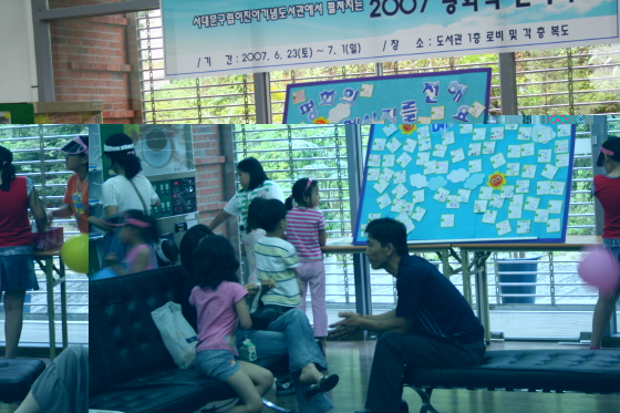 Á¦ÁÖ¿Í ºÎÆò±âÀûÀǵµ¼°ü¿¡ ÀÌ¾î ¼´ë¹®±¸¸³ÀÌÁø¾Æ±â³äµµ¼°ü¿¡¼ 6¿ù 23ºÎÅÍ 7¿ù 1ÀϱîÁö ¾î¸°ÀÌ ÆòÈÃ¥ Àü½Ãȸ°¡ ¿·È´Ù. ÆòÈÃ¥ 100Á¾ÀÇ Àü½Ã¿Í ÇÔ²² °¢Ãþ º¹µµ¿¡ ÆòÈÃ¥ ¼Ò°³±ÛÀ» ÆÇ³Ú·Î Àü½ÃÇØ³õ¾Ò°í, ÆòÈÀÇ ¸Þ½ÃÁö¸¦ ÂÊÁö¿¡ Àû¾î º¸µå¿¡ ºÙÀÌ´Â ¡®ÆòÈ ºñµÑ±â ¸¸µé±â¡¯, ¡®ÆòÈ¿µÈ ¹× DVD »ó¿µ¡¯ µî ´Ùä·Î¿î Çà»ç°¡ ÁøÇàµÇ¾ú´Ù. ¾ÆÀ̵éÀÌ ±×¸° ÆòÈŸÀÏ ÀÛǰÀ» ¼îÄÉÀ̽º¿¡ ´ã¾Æ Àü½ÃÇß°í, ¼¶øÀåµµ ¿ª½Ã ÀαⰡ ¸¹¾Ò´Ù. ¾î¸¥µé ±â¾ï¿¡µµ ¾Æ·ÃÇÑ ¿¬ÅºÀ» Á÷Á¢ º» ¾ÆÀ̵éÀÇ ´À³¦, »ó»óÀÌ µÇ½Ã³ª¿ä?