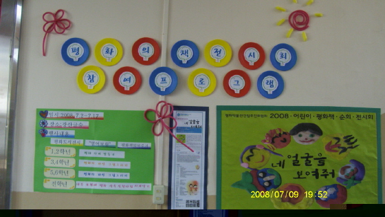 Àå»ê±Û ½£ ¼Ó¿¡ ÆòÈÀÇ ¾ó±¼µéÀ» ¸¸³µ´Ù. 2008 ¾î¸°ÀÌÆòÈÃ¥Àü½Ãȸ "³× ¾ó±¼À» º¸¿©Áà"°¡ À̹ø¿¡´Â ºÎ»ê Àå»êÃʵîÇб³ µµ¼°ü "Àå»ê±Û½£"À» ã¾Ò´Ù. µµ¼°ü °³°ü 1Áֳ⠱â³äÀÇ ¸ÞÀÎ Çà»ç·Î ÁøÇàµÈ À̹ø Àü½Ã¿¡´Â Çлýµé°ú ±³»çµéÀÇ Æø¹ßÀûÀÎ ¹ÝÀÀ°ú ºÏÀû°Å¸² ¼Ó¿¡ ÁøÇàµÇ¾ú´Ù. ¹Ýº°·Î 2½Ã°£¾¿ ÁøÇàµÈ Âü¿©ÇÁ·Î±×·¥¿¡´Â ÆòÈÃ¥ ÀоîÁÖ±â, ³ªºñ¸ðºô ¸¸µé±â, ÆòÈŸÀϰú ³ª¹«»¯Áö ¸¸µé±â, Æòȳª¹«¿¡ '³ªÀÇ ½Çõ' »ç°ú´Þ±â µîÀÌ ÁøÇàµÇ¾ú´Ù. ÀüüÀûÀ¸·Î dz¼ºÇÏ°í ¸¸Á·½º·± Çà»ç¿´À¸³ª, ÆòÈÀÇ Àǹ̰¡ ¾ÆÀ̵鿡°Ô º¸´Ù ³»¸é鵃 ¼ö ÀÖµµ·Ï ÇÏ´Â ¼¼½ÉÇÑ ¹è·Á°¡ ºÎÁ·ÇÑ °ÍÀÌ ´Ù¼Ò ¾Æ½¬¿ü´Ù.