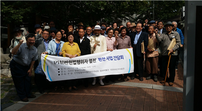 °¡Äª)¹ÝÇå¹ýÇàÀ§ÀÚ ¿ÀüÆíÂùÁÖºñÀ§¿øÈ¸(ÀÌÇÏ ¡®¹Ý¿ÆíÂùÀ§¡¯)´Â 2015³â 9¿ù 12ÀÏ Á¤¿À¿¡ Á¾·Î±¸ Àλ絿¿¡ À§Ä¡ÇÑ Áö¸®»ê ½Ä´ç¿¡¼ ½Ã¹Î»çȸ ¿ø·Î¸¦ ¸ð½Ã°í °£´ãȸ¸¦ °³ÃÖÇÏ¿´´Ù. ÀÌ ÀÚ¸®´Â ¡®¹Ý¿ÆíÂùÀ§¡¯ÀÇ »ç¾÷À» ¼³¸íÇϰí, »ç¾÷ÁøÇà¿¡ ´ëÇÑ ´Ù¾çÇÑ ÀǰßÀ» µè±â À§ÇØ ¸¶·ÃµÇ¾ú´Ù. À̹ø °£´ãȸ¿¡ ¾Õ¼ Áö³ 7¿ù 16ÀÏ ±âÀÚȸ°ßÀ» ÅëÇØ ¹ÝÇå¹ýÇàÀ§ÀÚ ¿ÀüÆíÂù»ç¾÷À» °ø°³ÀûÀ¸·Î ½Ã¹Î»çȸ¿¡ Á¦¾ÈÇÏ¿´°í, 8¿ù 12ÀÏ¿¡´Â ¹é¹ü±â³ä°ü¿¡¼ ¡®´©°¡ ¹ÝÇå¹ýÇàÀ§ÀÚÀΰ¡?¡¯¶ó´Â ÁÖÁ¦·Î ù ¹øÂ° Åä·Ðȸ¸¦ °¡Á³´Ù. Âü°í·Î ÀÌ ÆíÂù »ç¾÷Àº Æòȹڹ°°ü°ú ¼º°øÈ¸´ë ¹ÎÁÖÀÚ·á°üÀÌ °øµ¿À¸·Î ÃßÁøÇÏ´Â »ç¾÷ÀÌ´Ù.