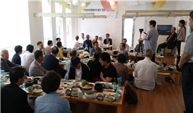 ¡°ÀÌ ¿ª»çÀûÀÎ »ç¾÷Àº »ç½ÇÀº ¹Ý¹ÎÁ·Ä£ÀÏÆÄµéÀÇ ¿ÀüÀ» ¸¸µç Ä£ÀÏÀθí»çÀü, ±× ÈļÓÀÛ¾÷À̶ó°í º¾´Ï´Ù. ¿Ö ±×·¯³Ä¸é ¿©±â¿¡ ¿À¸¦ »ç¶÷µéÀº ´ëü·Î ¹Ý¹ÎÁ· Ä£ÀÏÆÄµéÀÇ ÈÄ¿¹µéÀ̶ó°í Àú´Â ÀνÄÇÕ´Ï´Ù. ±×·± ¸é¿¡ ÀÖ¾î¼ ÀÌ »ç¾÷Àº ¿ì¸®°¡ ÇØ¾ß ÇÒ ÀÏÀÌÀÚ, Å« ¿ª»çÀûÀÎ »ç¾÷À̶ó°í º¾´Ï´Ù. ±×·± Àǹ̿¡¼ ÀÌ »ç¾÷ÀÌ ²À ¼º°øÇÒ ¼ö ÀÖµµ·Ï ¿ì¸®´Â ¸¶À½À» ¸ð¾Æ¼ ÀÌ ÀÜÀ» ºñ¿ó½Ã´Ù. ÀÌ »ç¾÷ÀÇ ¼º°øÀ» À§ÇÏ¿©!¡± ÀüâÀÏ ¼±»ý´ÔÀÇ ¼±Ã¢À¸·Î °£´ãȸ°¡ ½ÃÀ۵Ǿú´Ù.