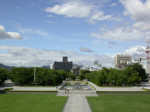°ø¿øÀÇ ³²ÂÊ ³¡¿¡´Â ¼¼ °³ÀÇ °Ç¹°ÀÌ ³ª¶õÈ÷ ¼Àִµ¥ ¹Ù·Î È÷·Î½Ã¸¶ Æòȱâ³äÀÚ·á°üÀÇ º»°ü°ú µ¿°ü, È÷·Î½Ã¸¶ ±¹Á¦È¸ÀÇÀåÀÌ´Ù.