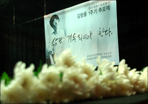 ¡ã 2006³â ºÎ»ê´ë¿¡¼ ¿¸° °í ±èÇü·ü¾¾ 1ÁÖ±â Ã߸ð½Ä ¾Ë¸²¸·. »ýÀü¿¡ ±×°¡ °Á¶Çß´ø "»îÀº °è¼ÓµÇ¾î¾ß ÇÑ´Ù"´Â ±Û±Í°¡ ¾²¿© ÀÖ´Ù. ¨Ï À±¼ºÈ¿
