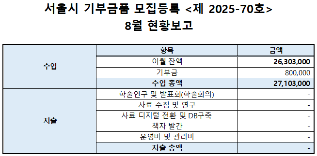 ***¼¿ï½Ã ±âºÎ±Ýǰ ¸ðÁýµî·Ï <Á¦2025-70È£> 2025³â 8¿ù ÇöȲº¸°í