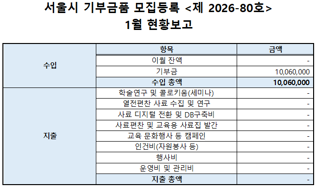 ***¼¿ï½Ã ±âºÎ±Ýǰ ¸ðÁýµî·Ï <Á¦2026-80È£> 2026³â 1¿ù ÇöȲº¸°í