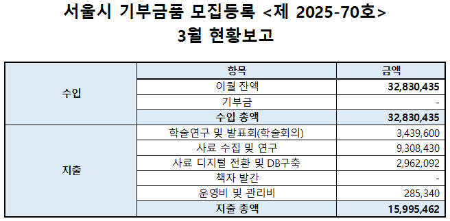 ***¼¿ï½Ã ±âºÎ±Ýǰ ¸ðÁýµî·Ï <Á¦2025-70È£> 2026³â 3¿ù ÇöȲº¸°í