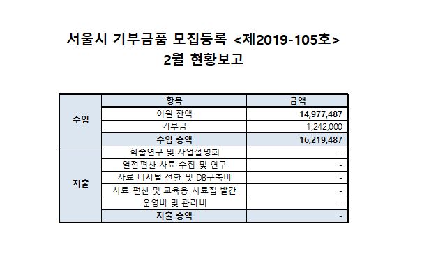***¼¿ï½Ã ±âºÎ±Ýǰ ¸ðÁýµî·Ï <Á¦2019-105È£> 2020³â 02¿ù ÇöȲº¸°í