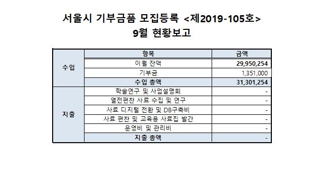 Á¦¸ñ ***¼­¿ï½Ã ±âºÎ±Ýǰ ¸ðÁýµî·Ï <Á¦2019-105È£> 2020³â 09¿ù ÇöȲº¸°í