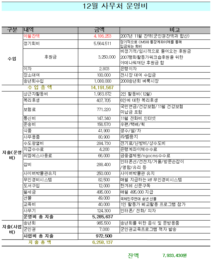 2007³â 12¿ù ÀçÁ¤º¸°í