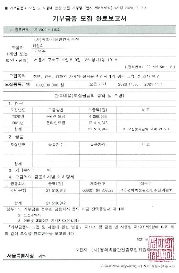 ***¼¿ï½Ã ±âºÎ±Ýǰ ¸ðÁýµî·Ï <Á¦2020-115È£>±âºÎ±Ýǰ ¸ðÁý ¿Ï·áº¸°í¼