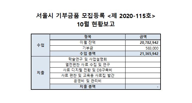 ***¼¿ï½Ã ±âºÎ±Ýǰ ¸ðÁýµî·Ï <Á¦2020-115È£> 2021³â 10¿ù ÇöȲº¸°í