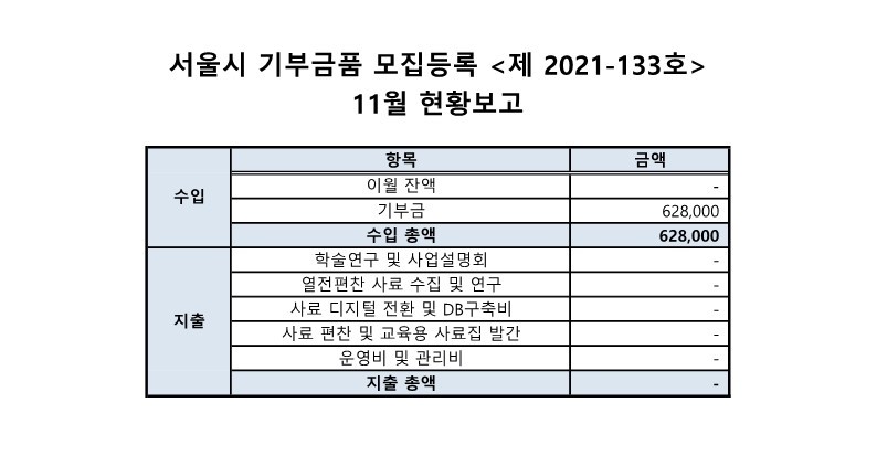 ***¼¿ï½Ã ±âºÎ±Ýǰ ¸ðÁýµî·Ï <Á¦2021-133È£> 2021³â 11¿ù ÇöȲº¸°í