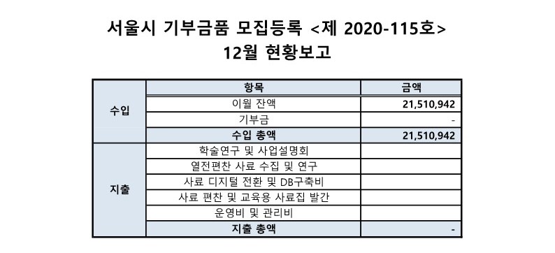 ***¼¿ï½Ã ±âºÎ±Ýǰ ¸ðÁýµî·Ï <Á¦2020-115È£> 2021³â 12¿ù ÇöȲº¸°í