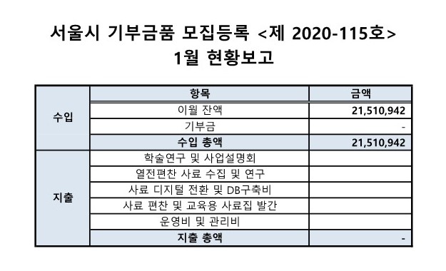 ***¼¿ï½Ã ±âºÎ±Ýǰ ¸ðÁýµî·Ï <Á¦2020-115È£> 2021³â 1¿ù ÇöȲº¸°í