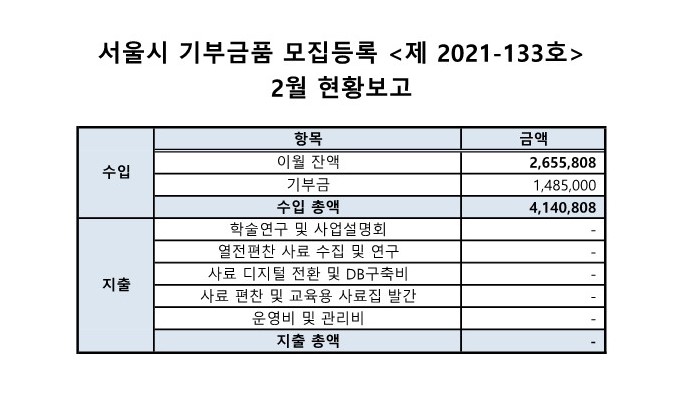 ***¼¿ï½Ã ±âºÎ±Ýǰ ¸ðÁýµî·Ï <Á¦2021-133È£> 2022³â 2¿ù ÇöȲº¸°í