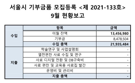 ***¼¿ï½Ã ±âºÎ±Ýǰ ¸ðÁýµî·Ï <Á¦2021-133È£> 2022³â 9¿ù ÇöȲº¸°í