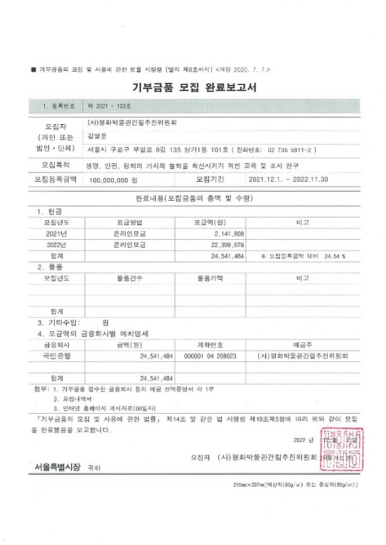 ***¼¿ï½Ã ±âºÎ±Ýǰ ¸ðÁýµî·Ï <Á¦2021-133È£>±âºÎ±Ýǰ ¸ðÁý ¿Ï·áº¸°í¼
