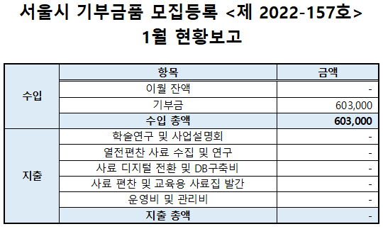 ***¼¿ï½Ã ±âºÎ±Ýǰ ¸ðÁýµî·Ï <Á¦2022-157È£> 2023³â 1¿ù ÇöȲº¸°í